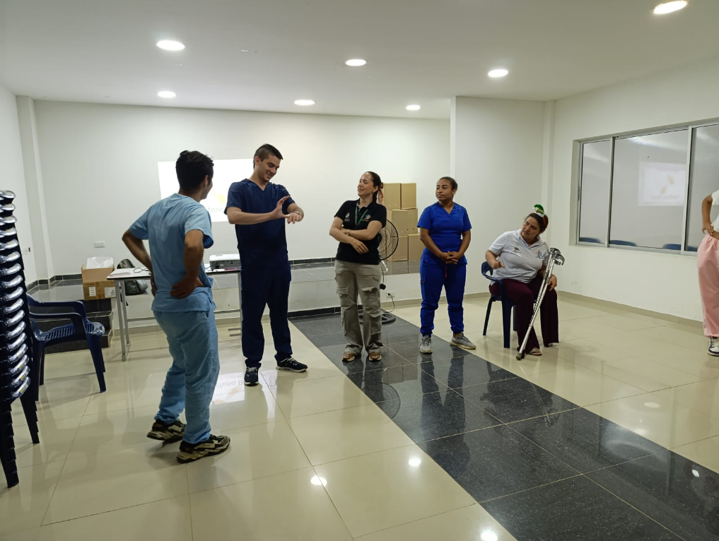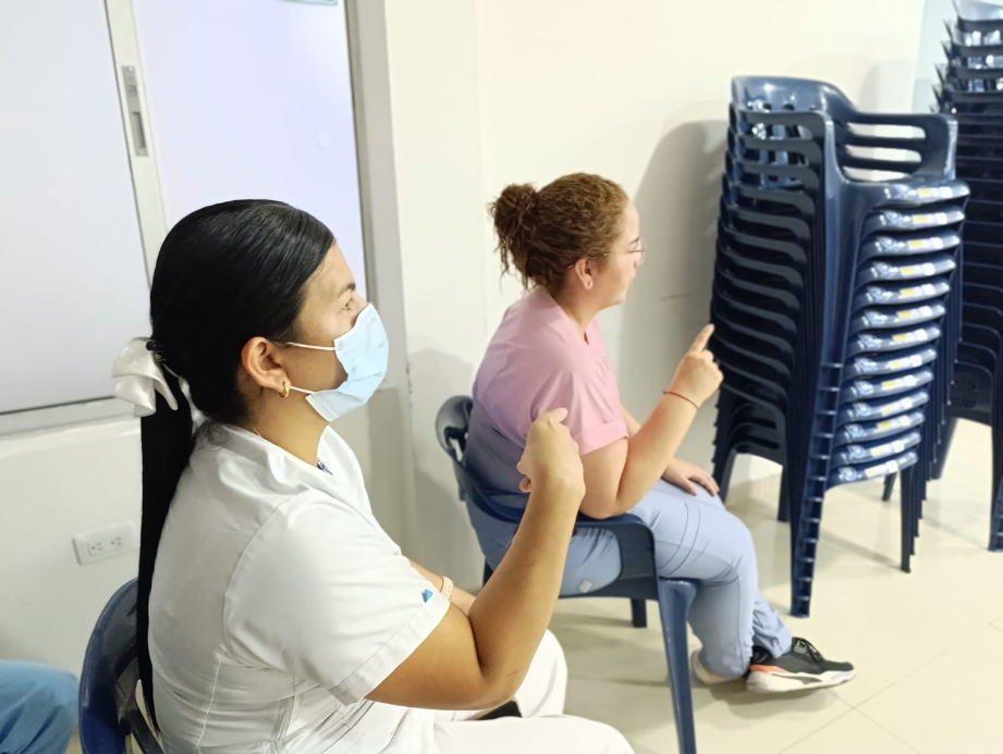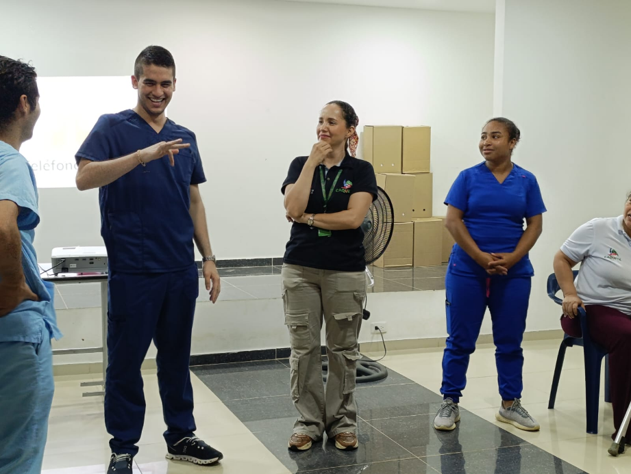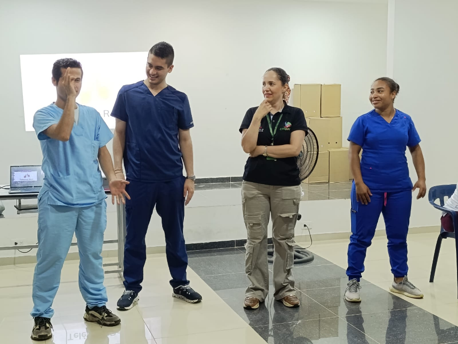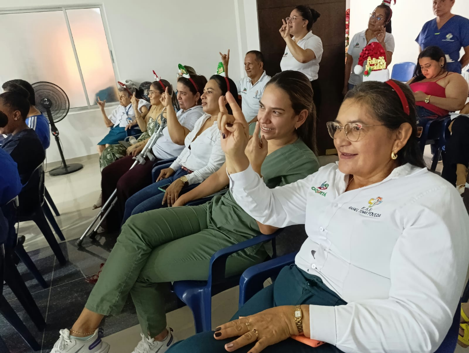 | En compañía de la Secretaría de Salud Departamental se realiza la capacitación al personal del área asistencial y administrativa de las IPS en lengua de señas permitiendo la adquisición de conocimientos que se orientan a la atención humanizada con enfoque diferencial. |